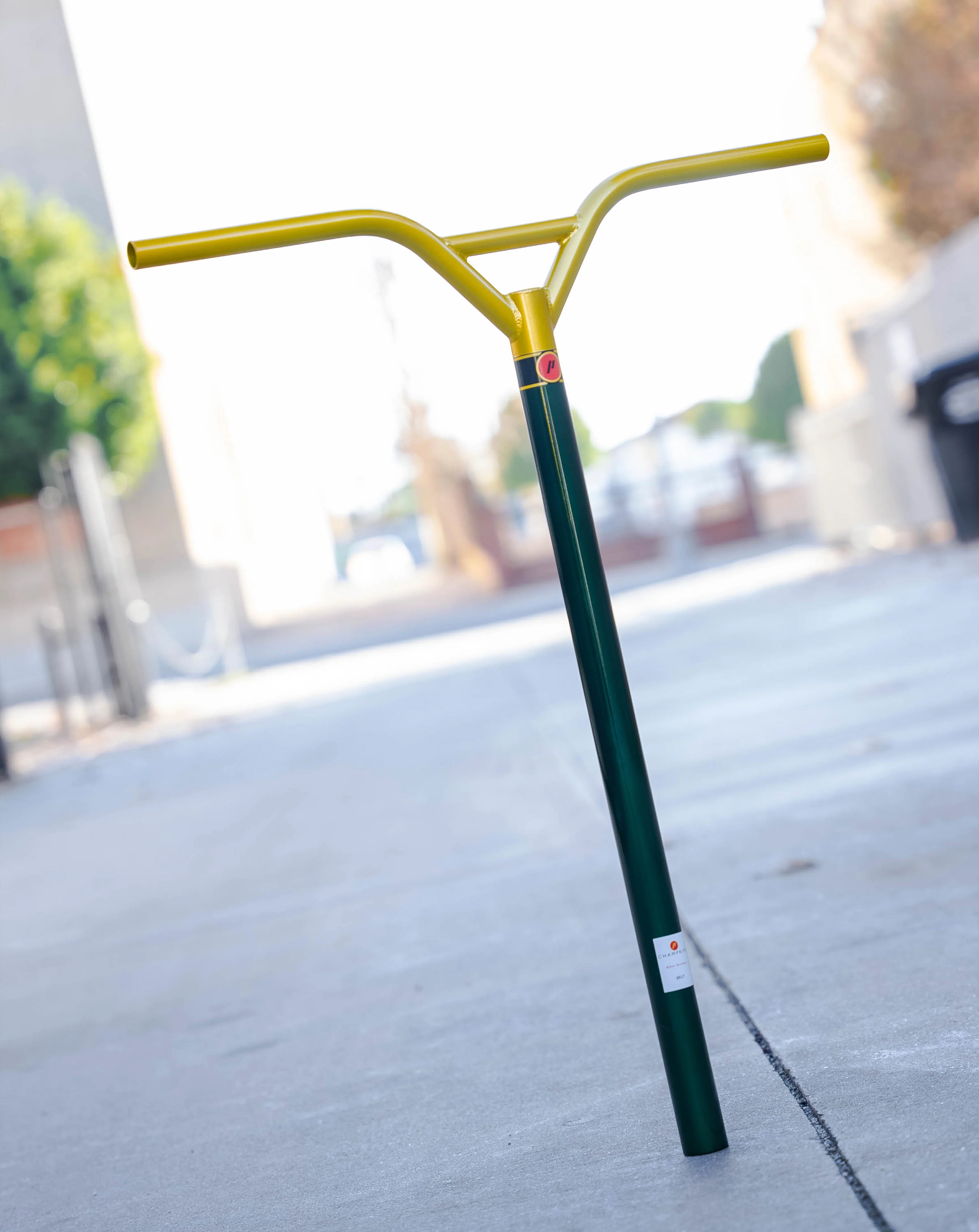 Didine's signature bar from Prime was inspired by a bottle of champagne. The color scheme screams class, just as Didine's riding does. Didine also opted to use the Yank bar as the base for his signature part. The Prime Yank bar is the classic Y-bar shape, and is one of the strongest styles available. The Yank has an oversized diameter, and comes with a slit so they're compatible with HIC straight out of the box. This version of the Yank is 29.1" tall, 23.6" wide, and weighs 3.17 lbs.