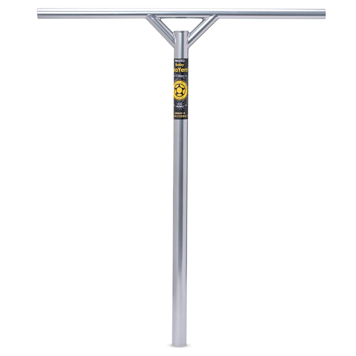 PROTO Baby SlaYers are back! Much anticipated and long over due. The Baby brother of the handlebar that defined freestyle scooter handlebars is now available again for the first time in over 4 years! PROTO took the design all the way back to its Classic roots with the smooth clean gussets TIG welded out of 4130 Chromoly and 100% Manufactured in San Diego, California, USA, as always! 1-1/4” column, SCS, ICS & IHC compatible. Available in Flat Black and RAW Clear.